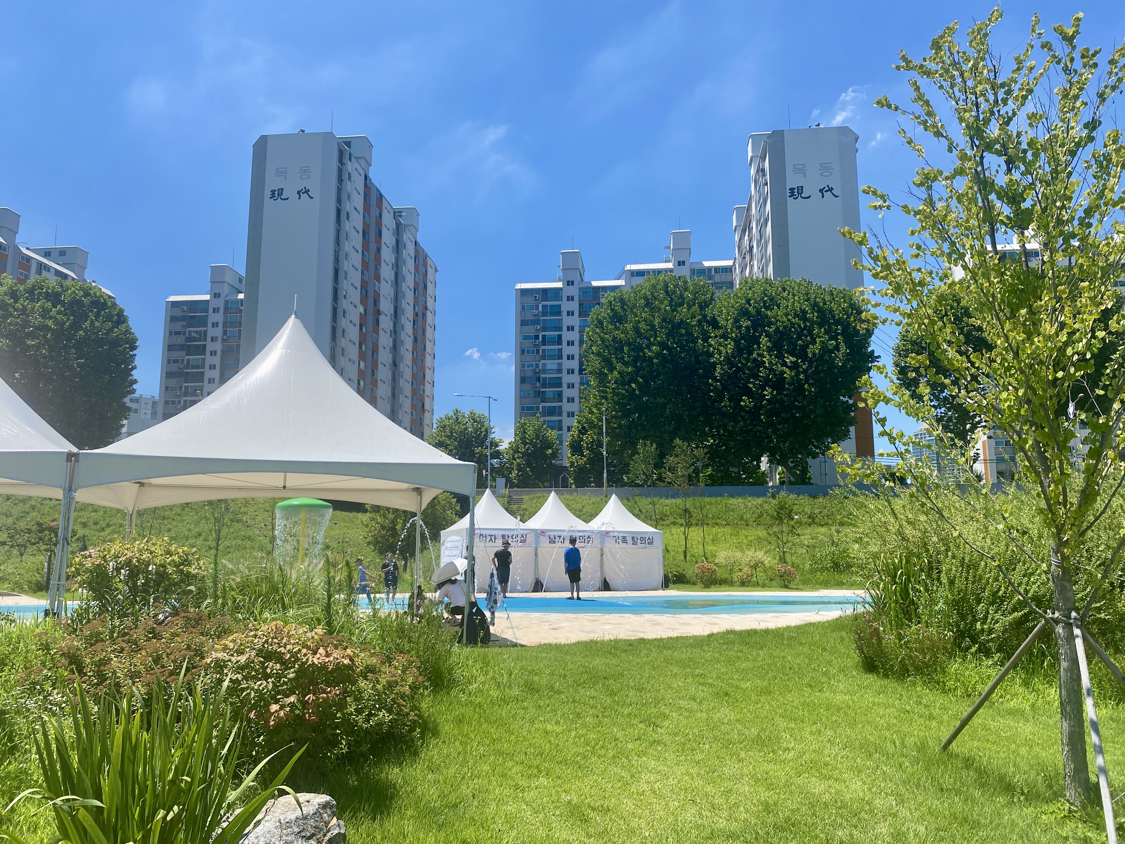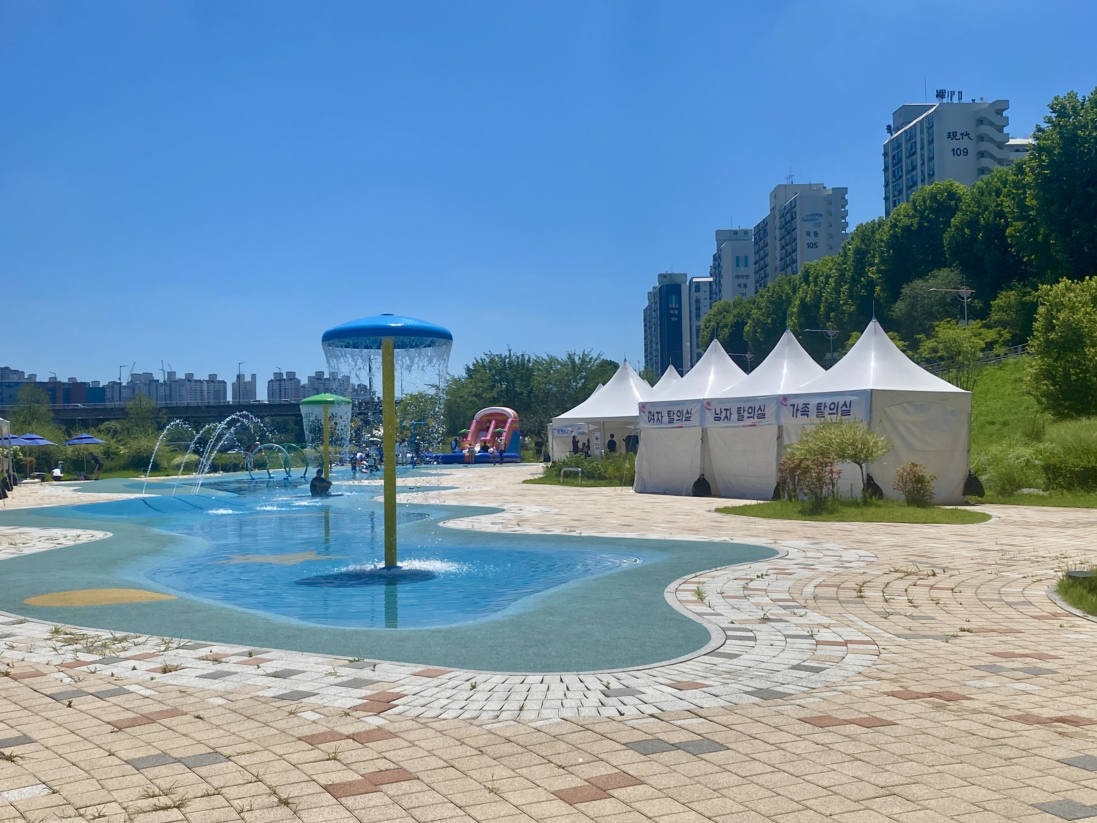 그래서 찾아보았습니다. 오목교역 근처 안양천에 위치한 가족정원 물놀이장에서 아이들 여름방학을 시원하게 보낼수 있는 이곳