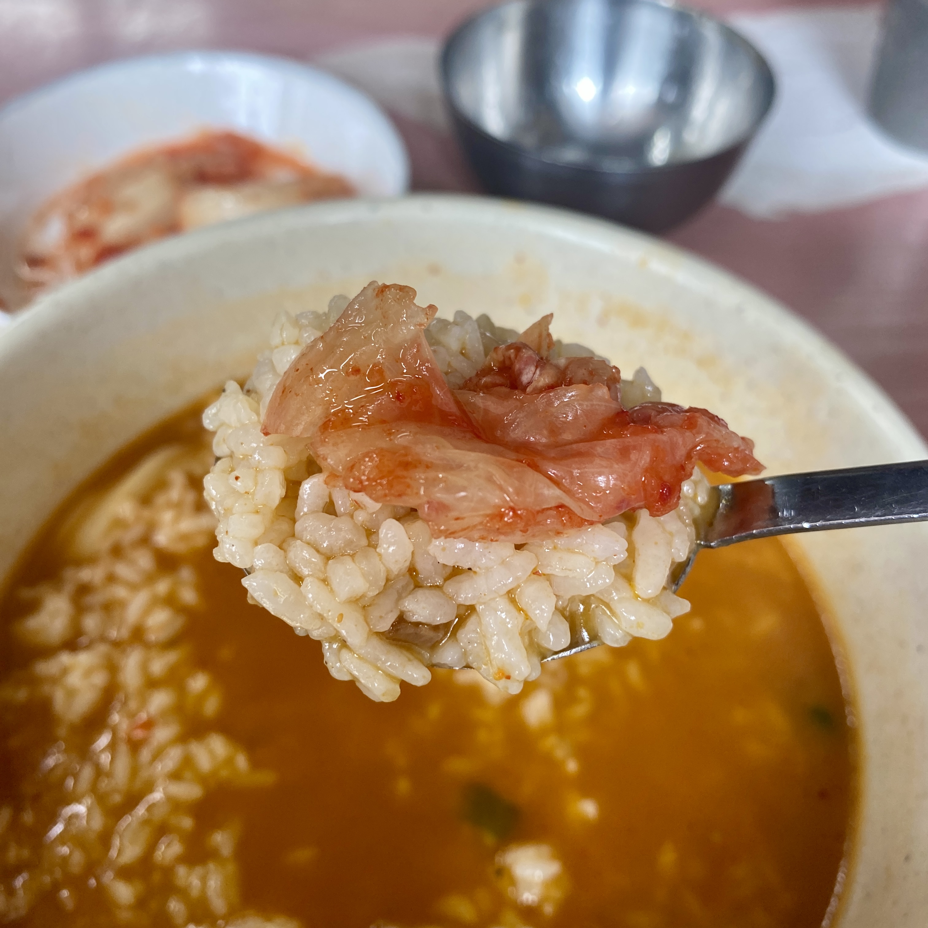 그리고 남은 공기밥을 국물에 자작하게 말아서 김치와 함께 먹으니