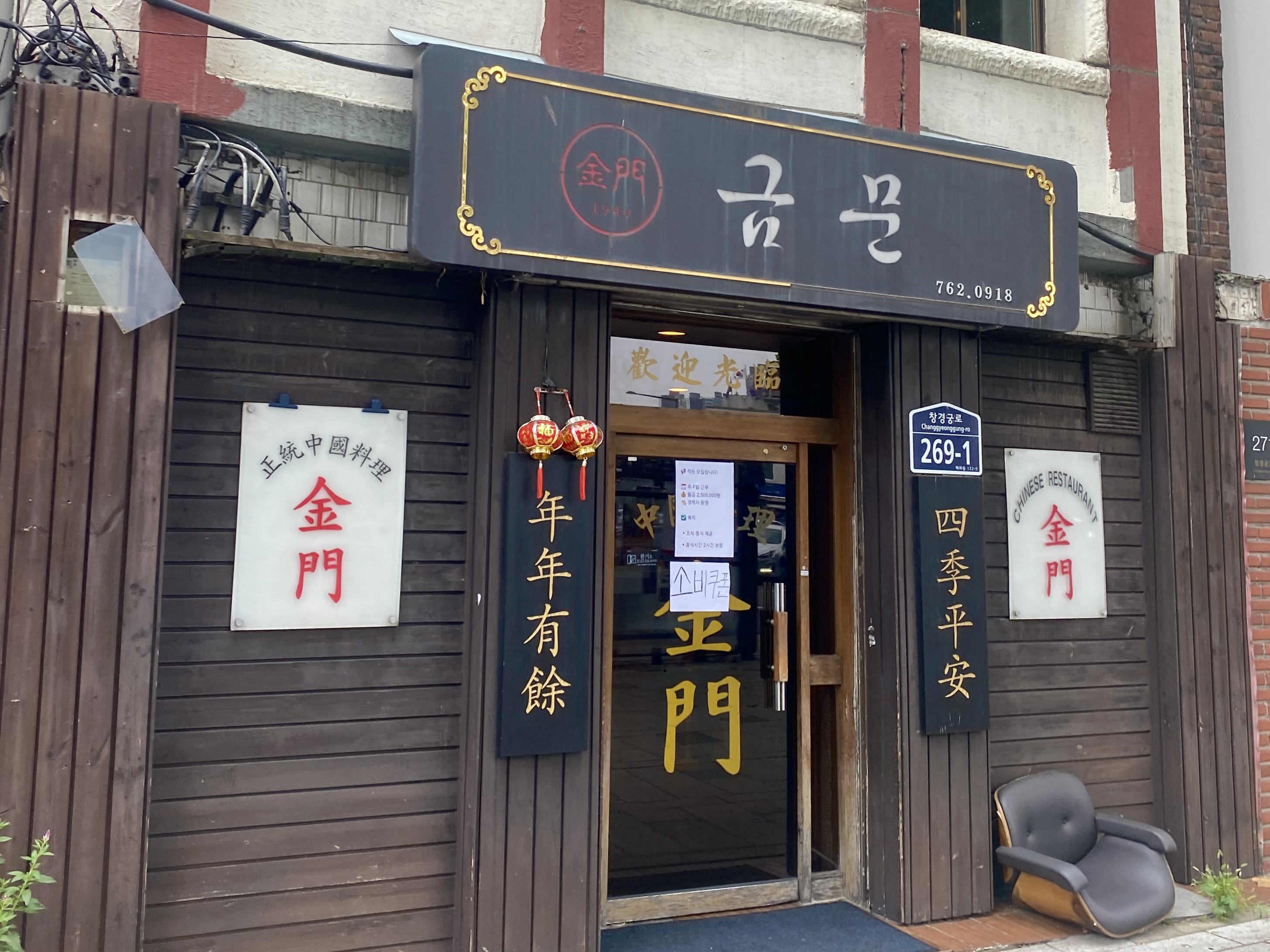 그래서 첫날은 혼밥하기 좋은 중식당을 찾아보았어요. 대학로 끝자락 혜화로터리에 위치한 금문이라는 중식 노포였지요.